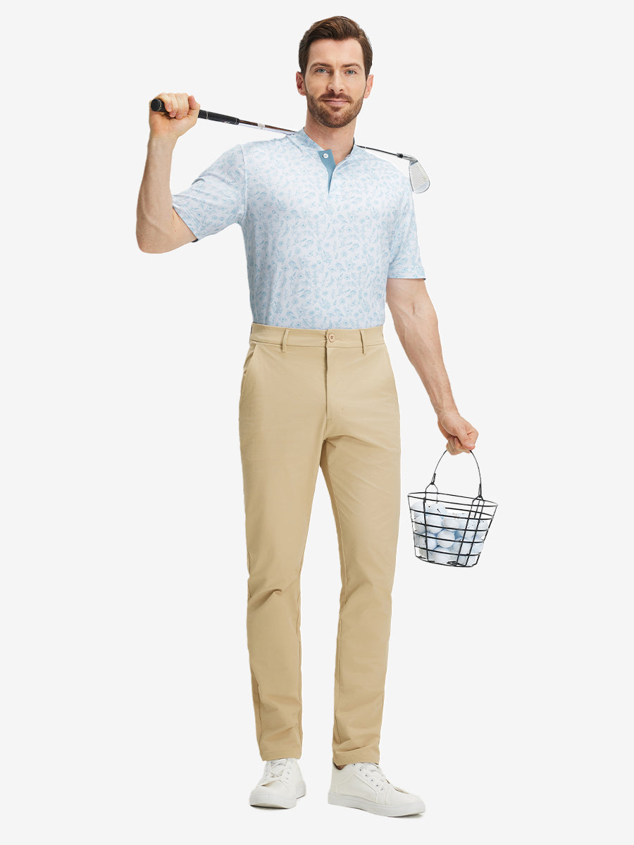 Stretch Printed Collarless Henley Golf Shirts